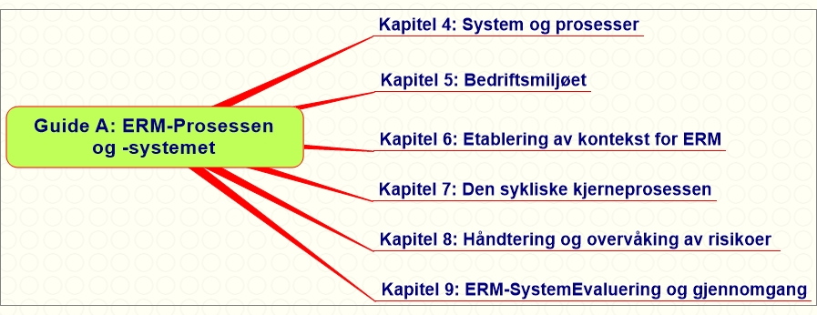 Guide A retter seg mot ledere og personer med generelle behov for kunnskap om ERM. Målsetningen med denne guiden er å gi en generell innføring i hvilke standarder guiden støtter seg til, samt de forhold som har ledet frem til de teorier som gjelder i dag. Emnene guiden behandler er som følger: