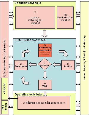ENHET B2.2 Identifisering:beskriver den første fasen i kjerneprosessen som er en systematisk registrering av alle potensielle konsekvenser av risikoer som både representerer muligheter som trusler som blir vurdert, uavhengig av tilhørighet til organisasjonsenhet eller om disse er ”finansielle” eller ”ikke-finansielle” risikoer. |
