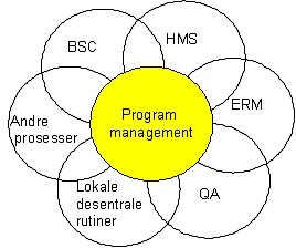 I prosjektrettede miljøer eller ”flate” organisasjoner, der prosjektene ofte er sidestilte, kan viljen til å samarbeide sideveis sitte ekstra langt inne. Noen organisasjoner har derfor formalisert oppgaven med prosess-koordinering ved å etablere en funksjon som skal ta seg av samspillet mellom pro-sessene. Denne funksjonen kalles ofte ”Program Management” og arbeider normalt på tvers av organisatoriske skillelinjer.